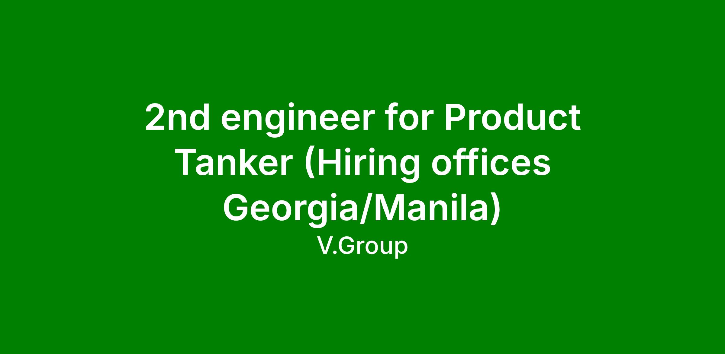 2nd engineer for Product Tanker (Hiring offices Georgia/Manila)