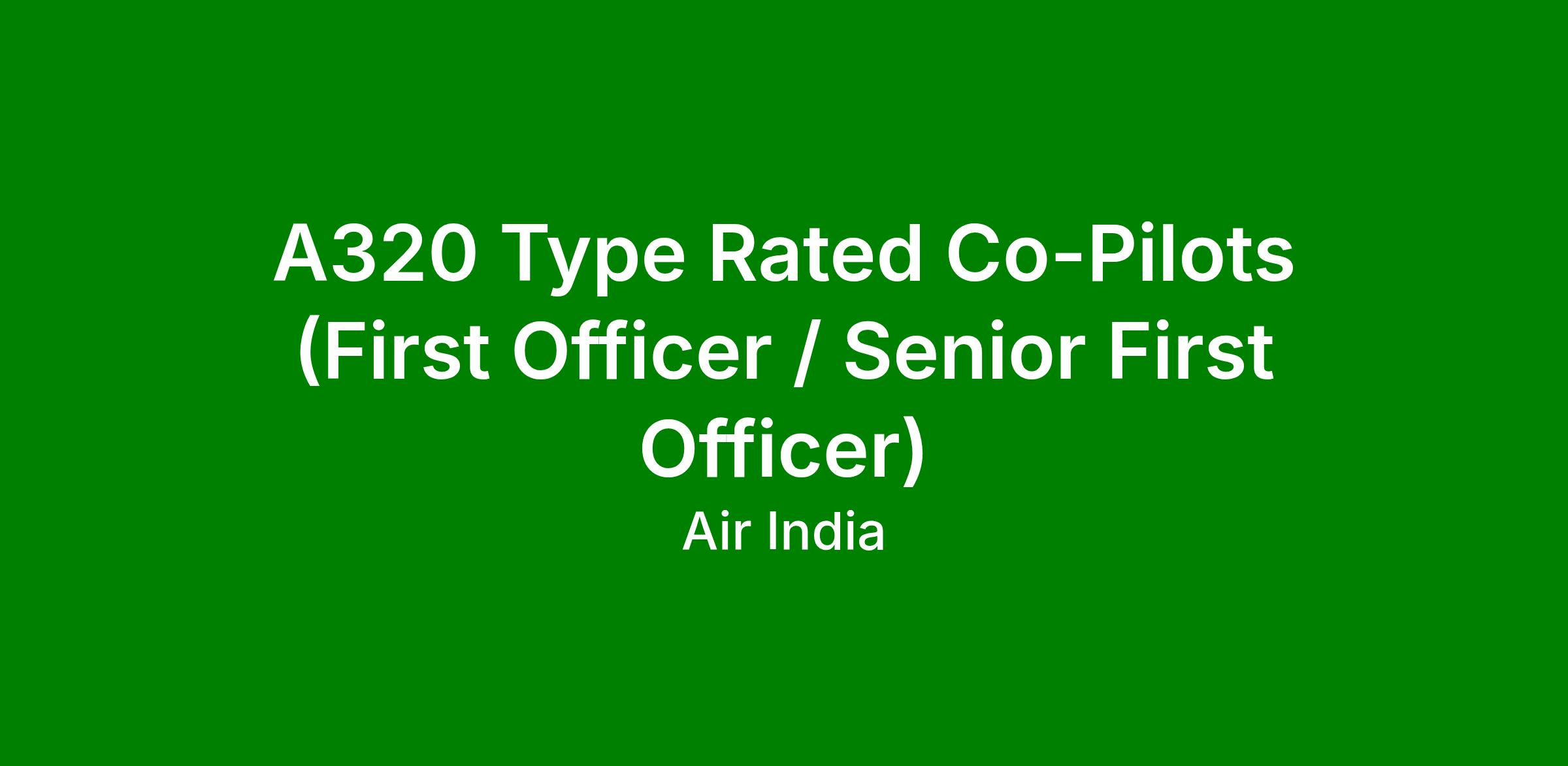 AIR INDIA GROUP is Inviting Applications from Experienced A320 Type Rated Co-Pilots (First Officer (CPL) / Senior First Offer (ATPL))