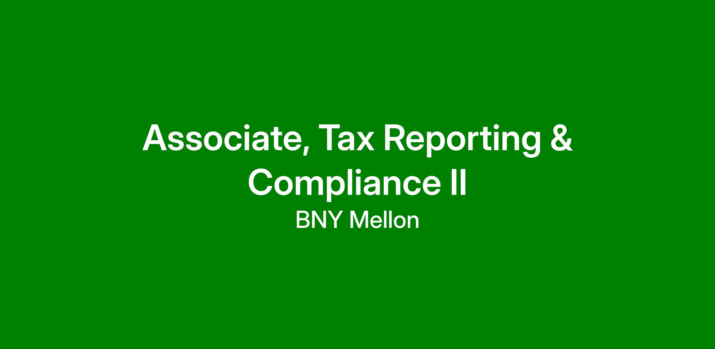 Associate, Tax Reporting & Compliance II