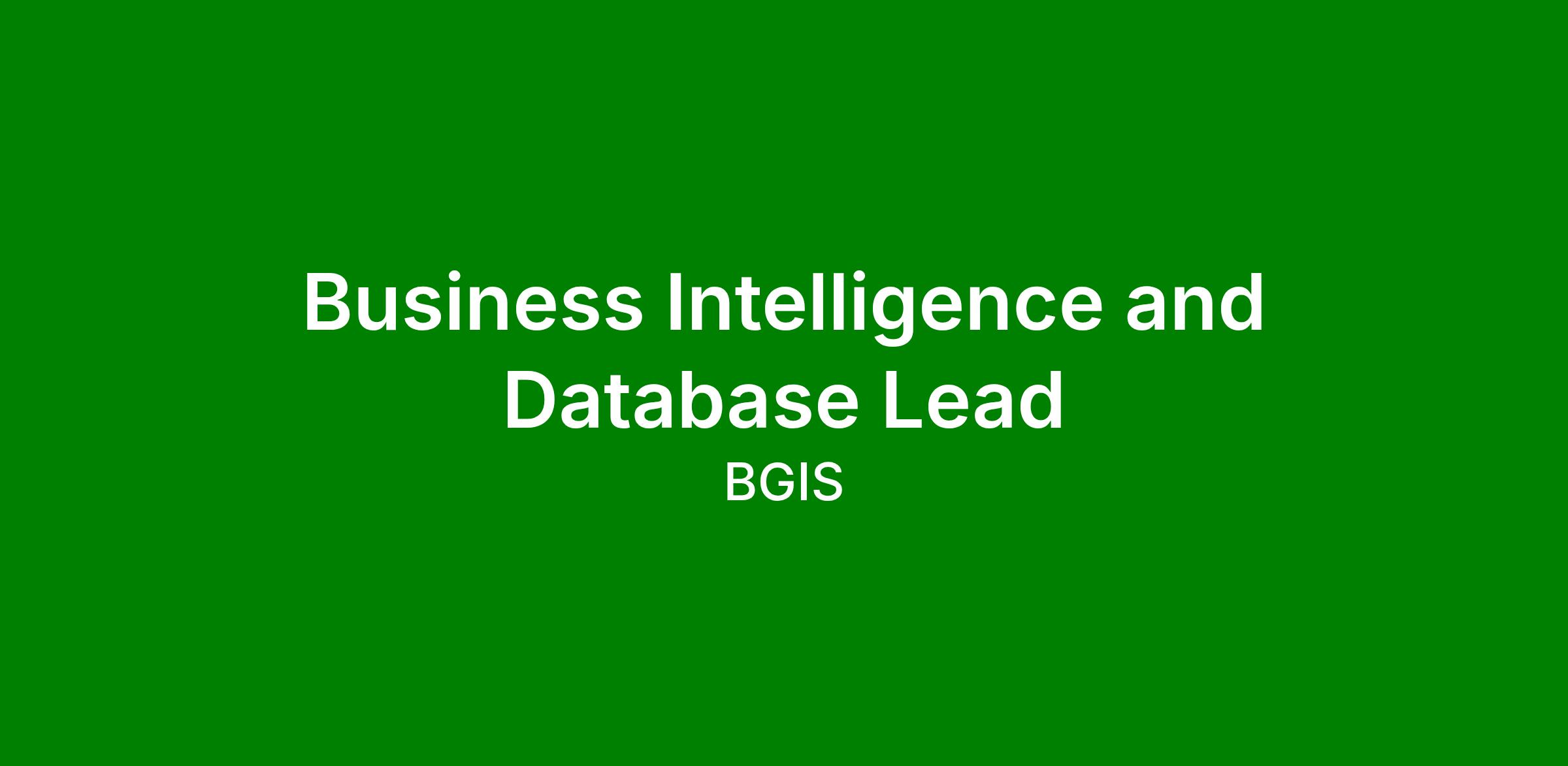Job Title: Business Intelligence and Database Lead