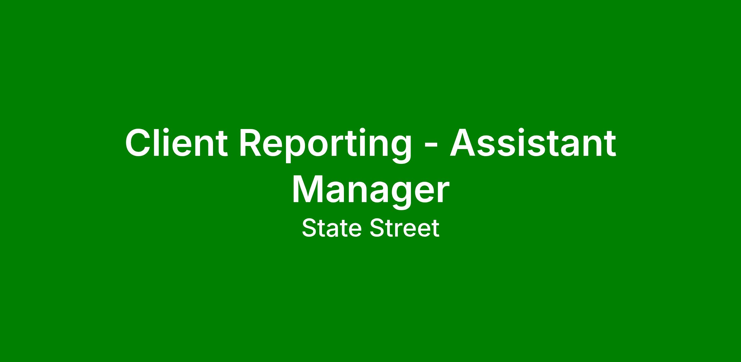 As Client Reporting -Assistant Manager will:
