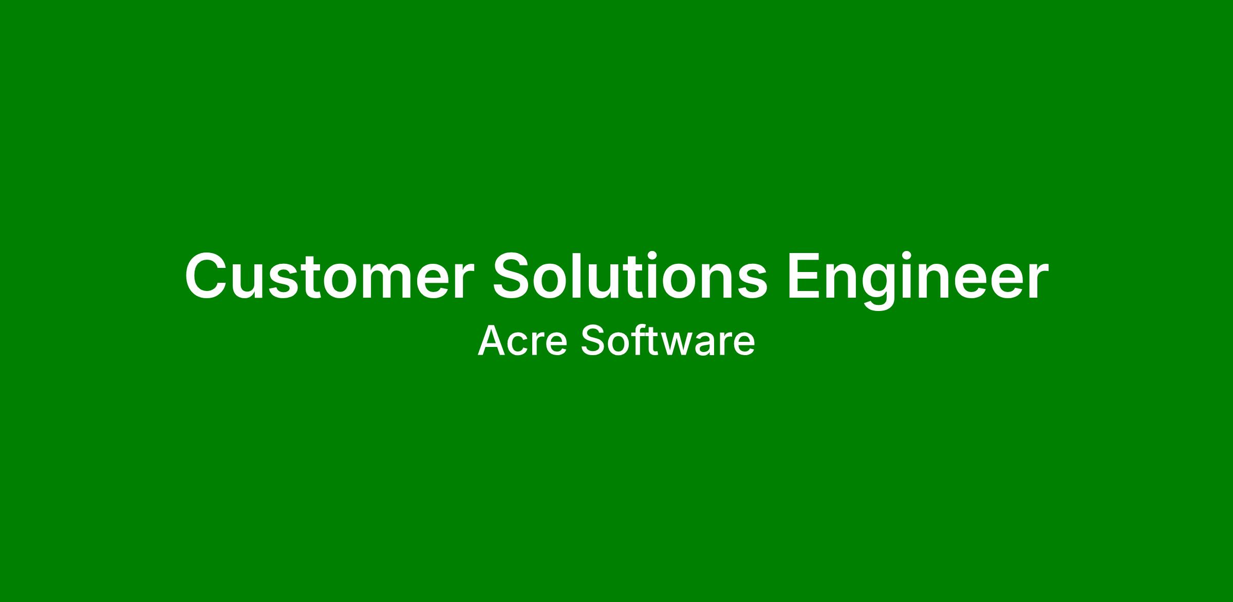 As a Customer Solutions Engineer, you’ll work with Acre’s Customer Success Team to help advanced users of the Acre platform use and build upon our Enterprise functionality.