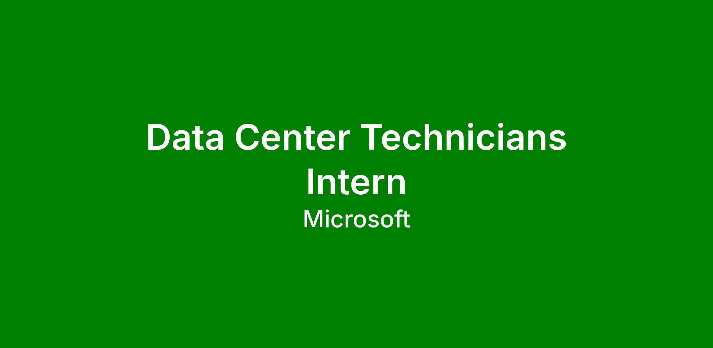 In alignment with our Microsoft values, we are committed to cultivating an inclusive work environment for all employees to positively impact our culture every day and we need you as a Datacenter Technician (DCT) Intern.