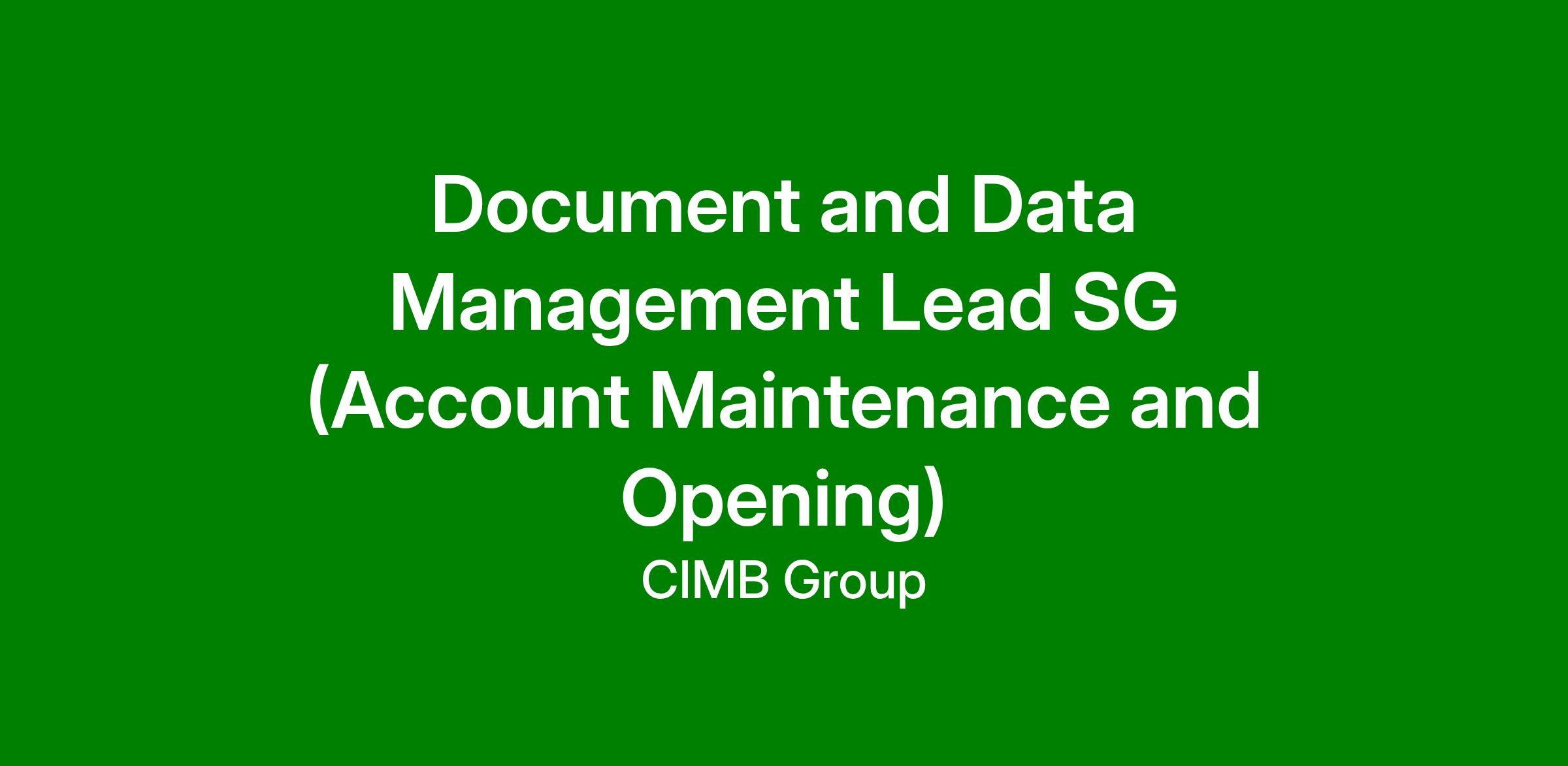 Document and Data Management Lead SG (Account Maintenance and Opening)