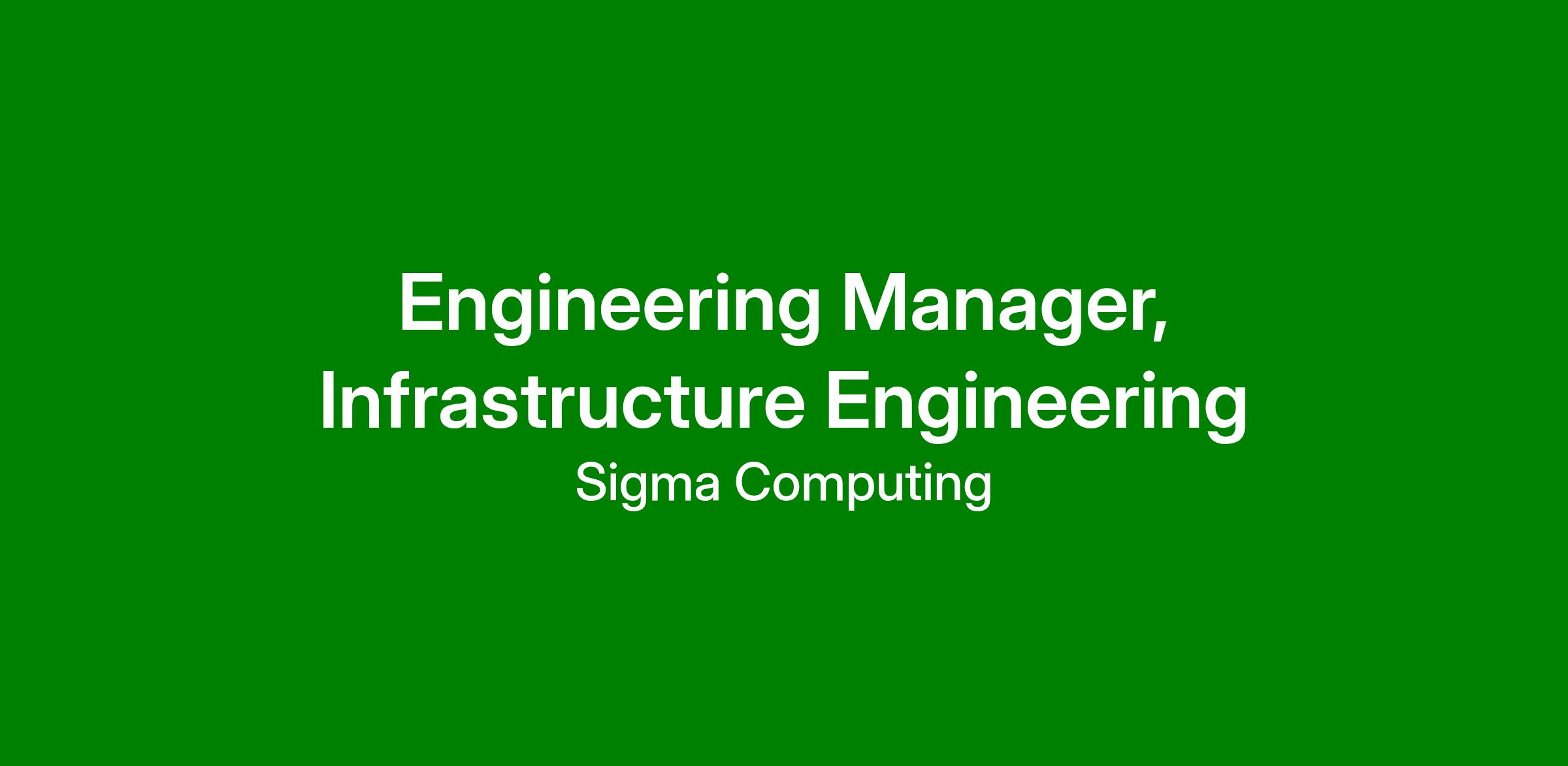 At Sigma, we are redefining how modern businesses leverage data by building a high-performance, cloud-native analytics platform. As we scale, we’re looking for an infrastructure-focused Engineering Manager. You’ll lead a team of skilled engineers responsible for the core platform infrastructure that powers Sigma’s reliability, scalability, and velocity.