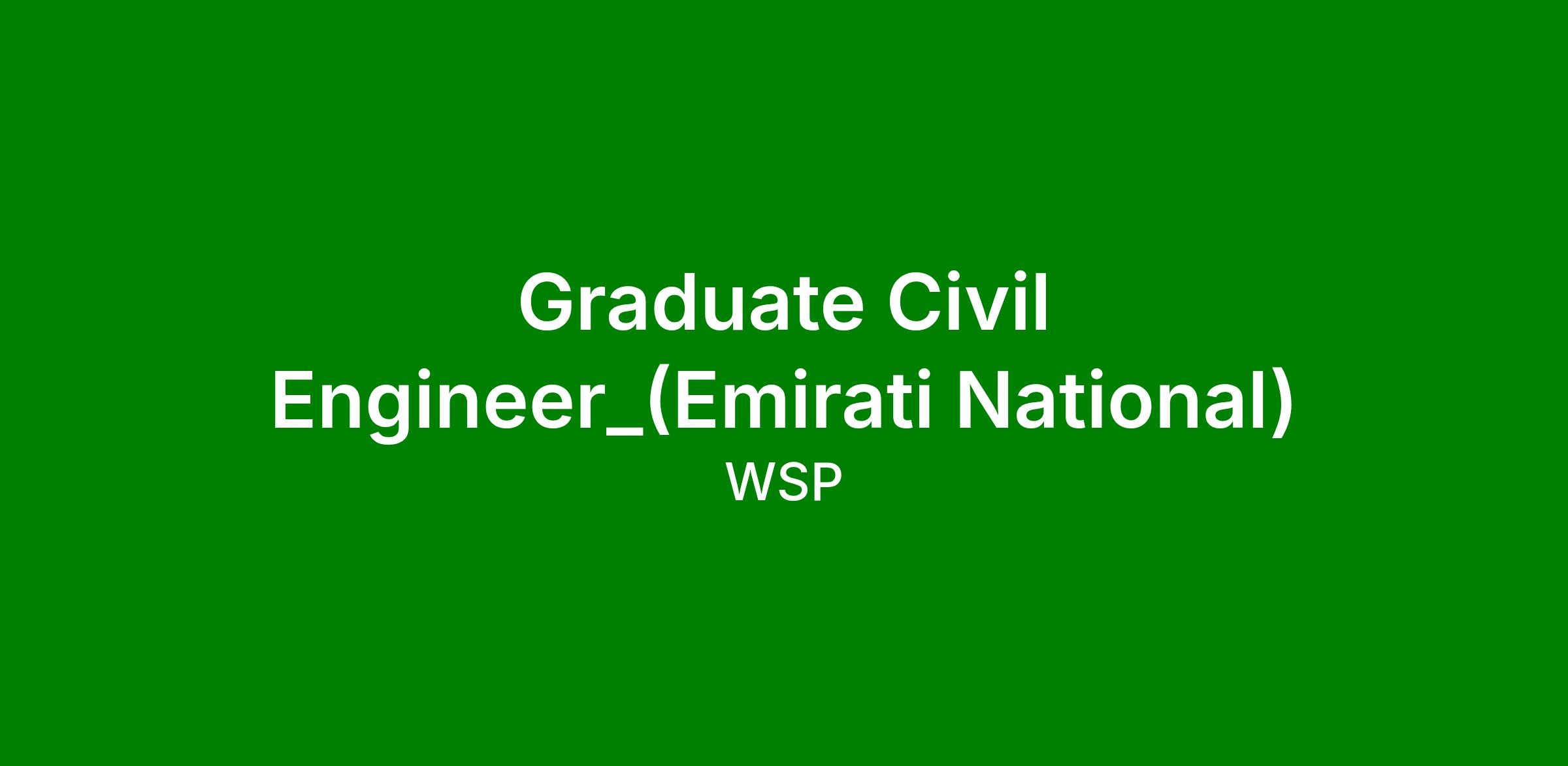 DescriptionAs a Graduate Civil Engineer at WSP, you will join one of the world’s leading engineering professional services consultancies, supporting key infrastructure and property projects across the UAE. This role is designed specifically for Emirati graduates, offering structured development, mentorship, and hands-on project exposure.