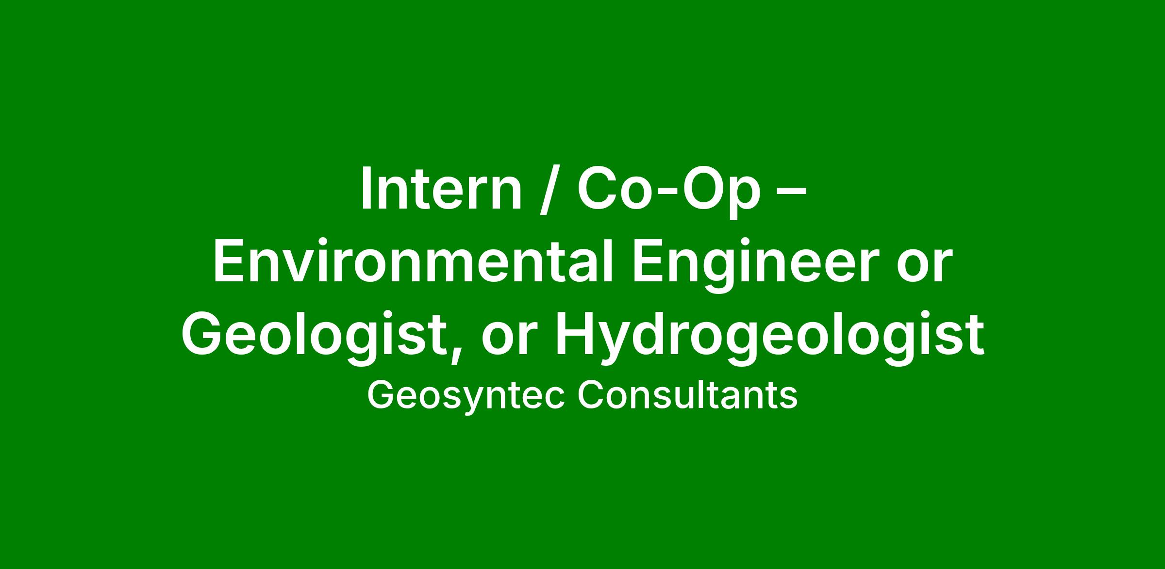 Geosyntec has an exciting opportunity for an Intern / Co-Op – Environmental Engineer or Geologist, or Hydrogeologist in our Columbia, Maryland office. The position offers the opportunity to apply engineering academic knowledge to real-world situations while also learning the business skills needed for a successful consulting career. The position is full-time (40 hours/week) for approximately 13 to 15 weeks during the summer of 2026. Candidates are responsible for coordinating their own transportation to and from the office. Relocation and housing is not provided for this position.