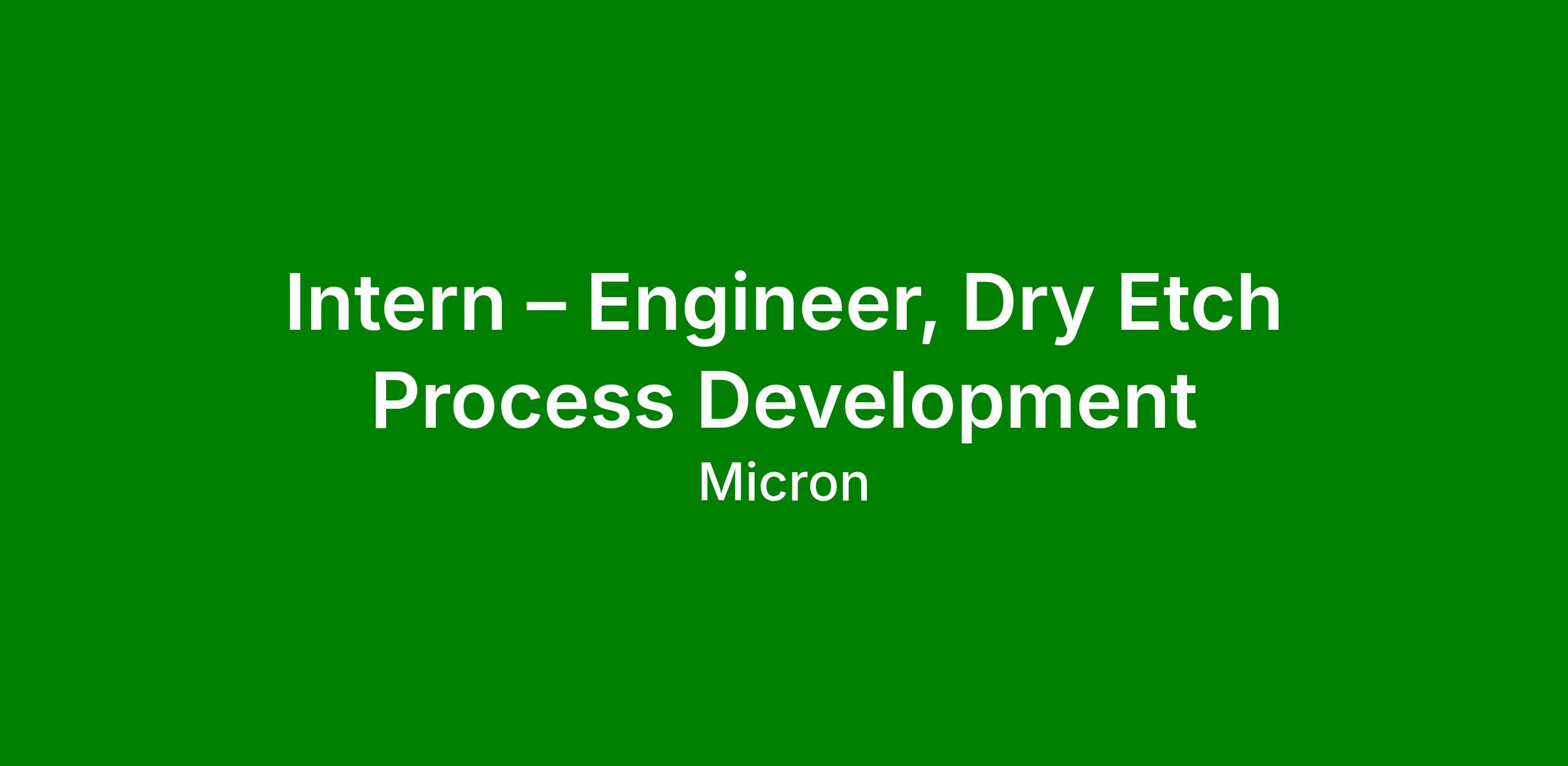 This internship project offers hands-on exposure to semiconductor dry etch process development within a manufacturing environment. The intern will participate in structured experimental studies to evaluate opportunities for improving process efficiency, reducing material cost, and minimizing process variation through data-driven analysis.