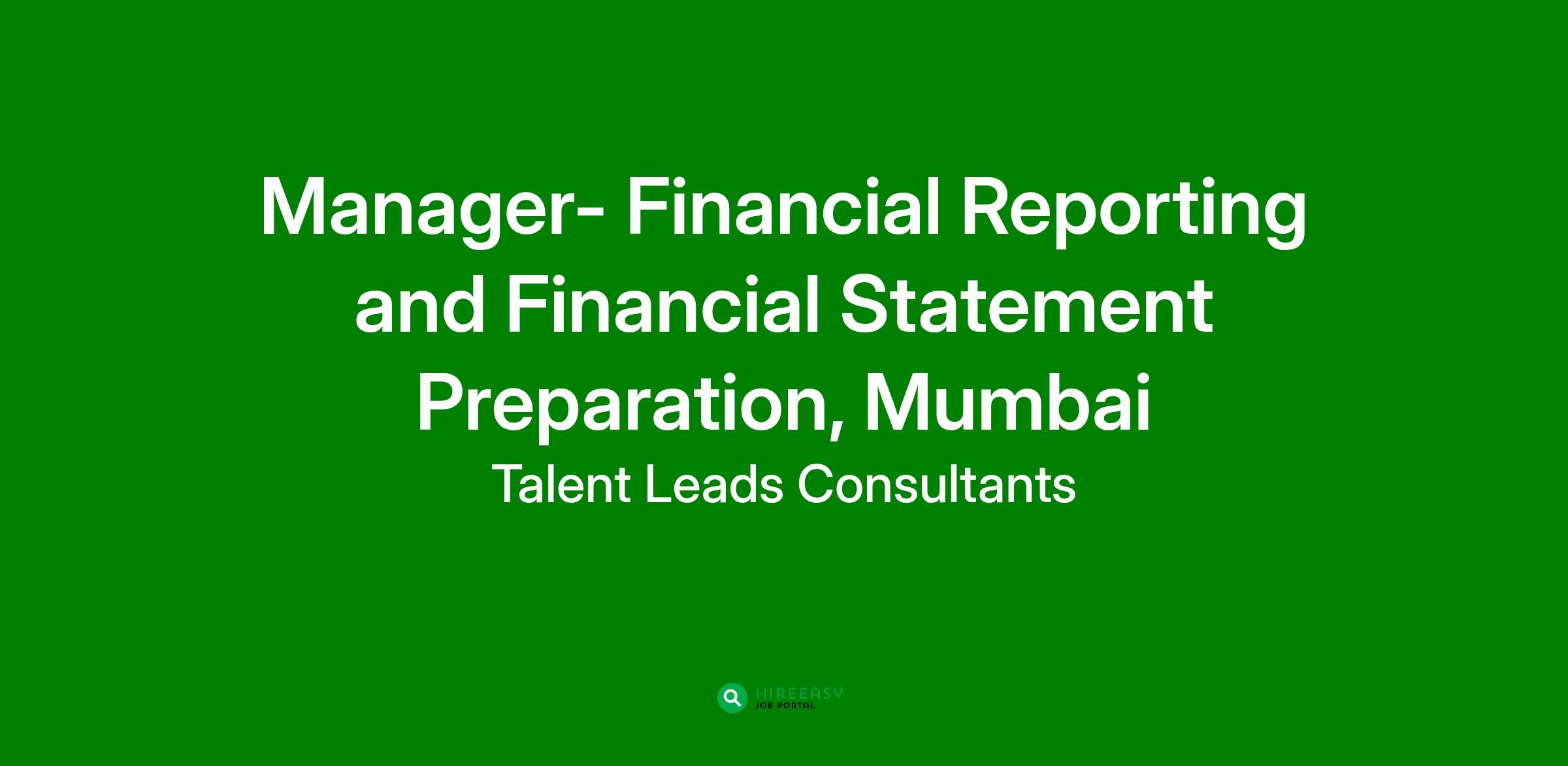 Position / Job Title- Manager – Financial Reporting and Financial Statement Preparation