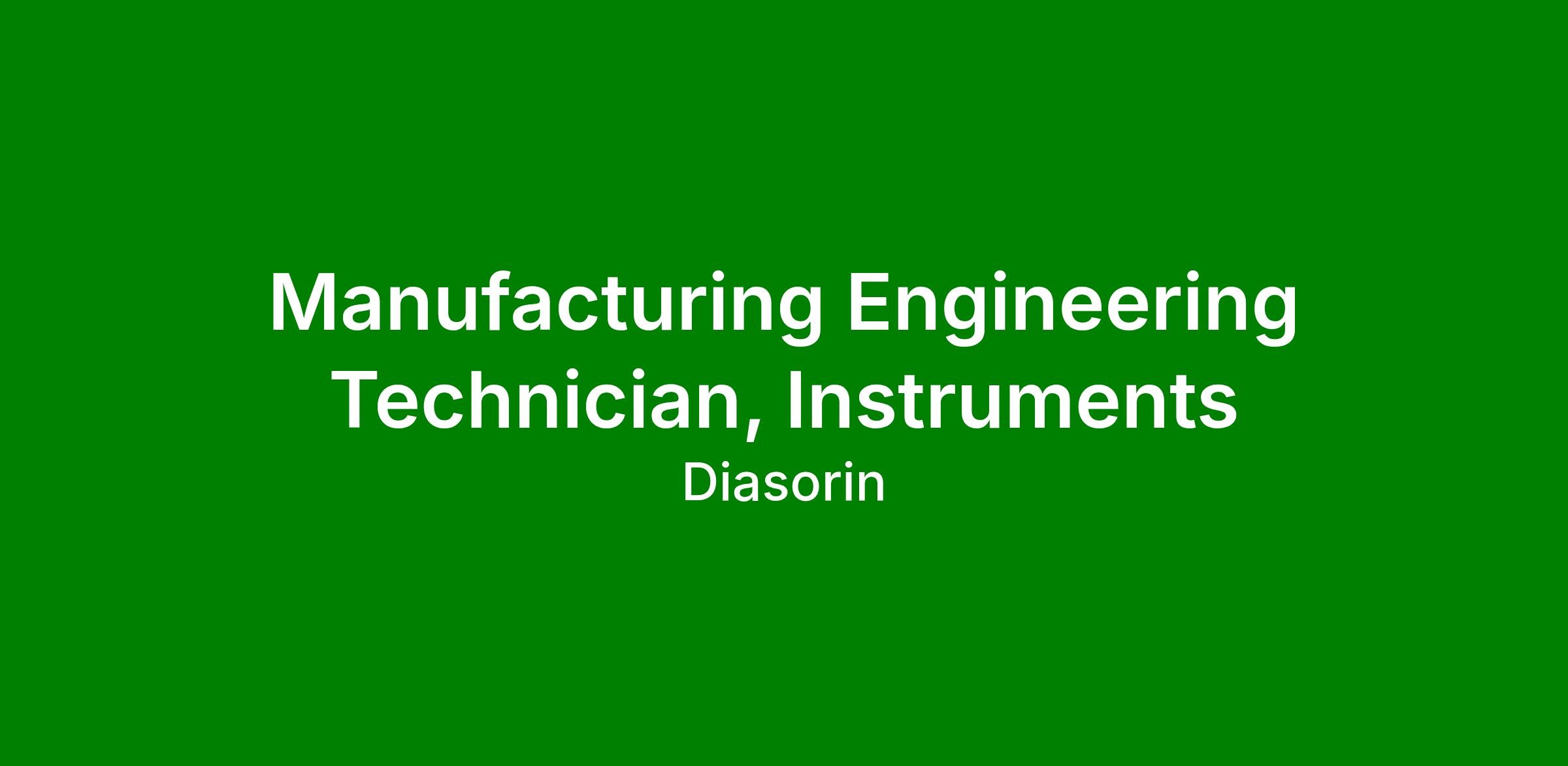 The Manufacturing Engineering Technician, Instruments will be responsible for: