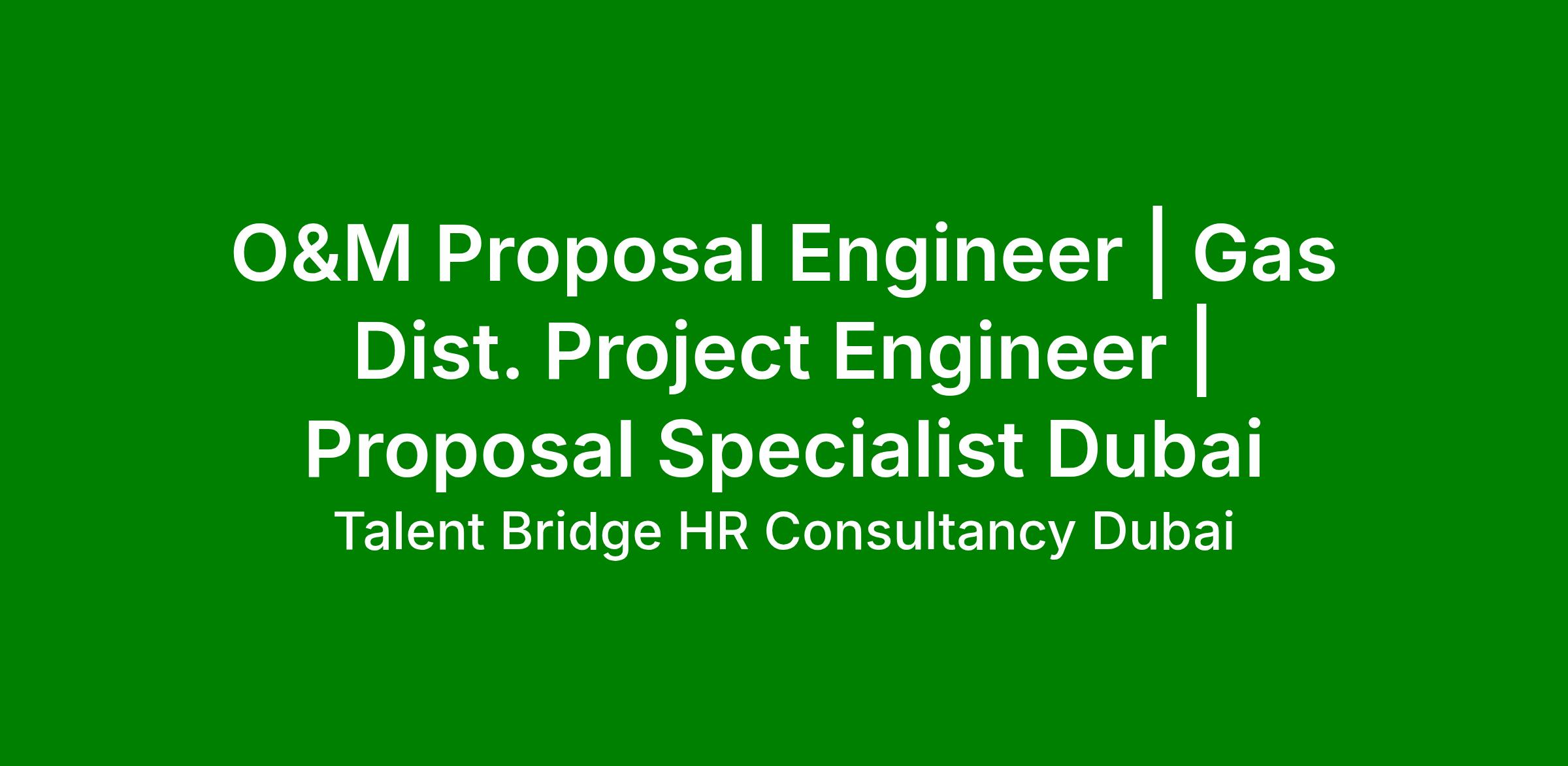 #jobsindubai #careersindubai #recruitmentindubai #executivesearchindubai #headhuntingindubai #headhuntersindubai #tbhrc #talentbridgedubai #talentbridgehrconsultancy #OMProposalEngineer #GasDistributionJobs #DubaiEngineeringJobs #LPG #CNG #NG