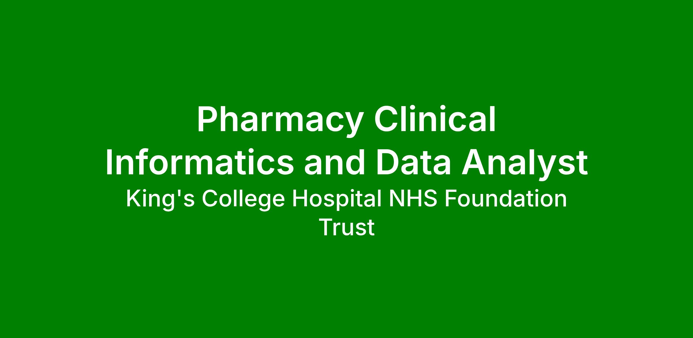 The Pharmacy Clinical Informatics and Data Analyst plays a key role in supporting the Pharmacy Department’s data and digital strategy, ensuring high-quality, reliable and meaningful use of data to drive clinical, operational and strategic decision-making. Working closely with pharmacy teams, IT Clinical Systems, and Trust-wide data functions, the post holder will lead on data analysis, reporting, data quality assurance and visualisation, while also contributing to the optimisation of the Electronic Health Record (Epic).