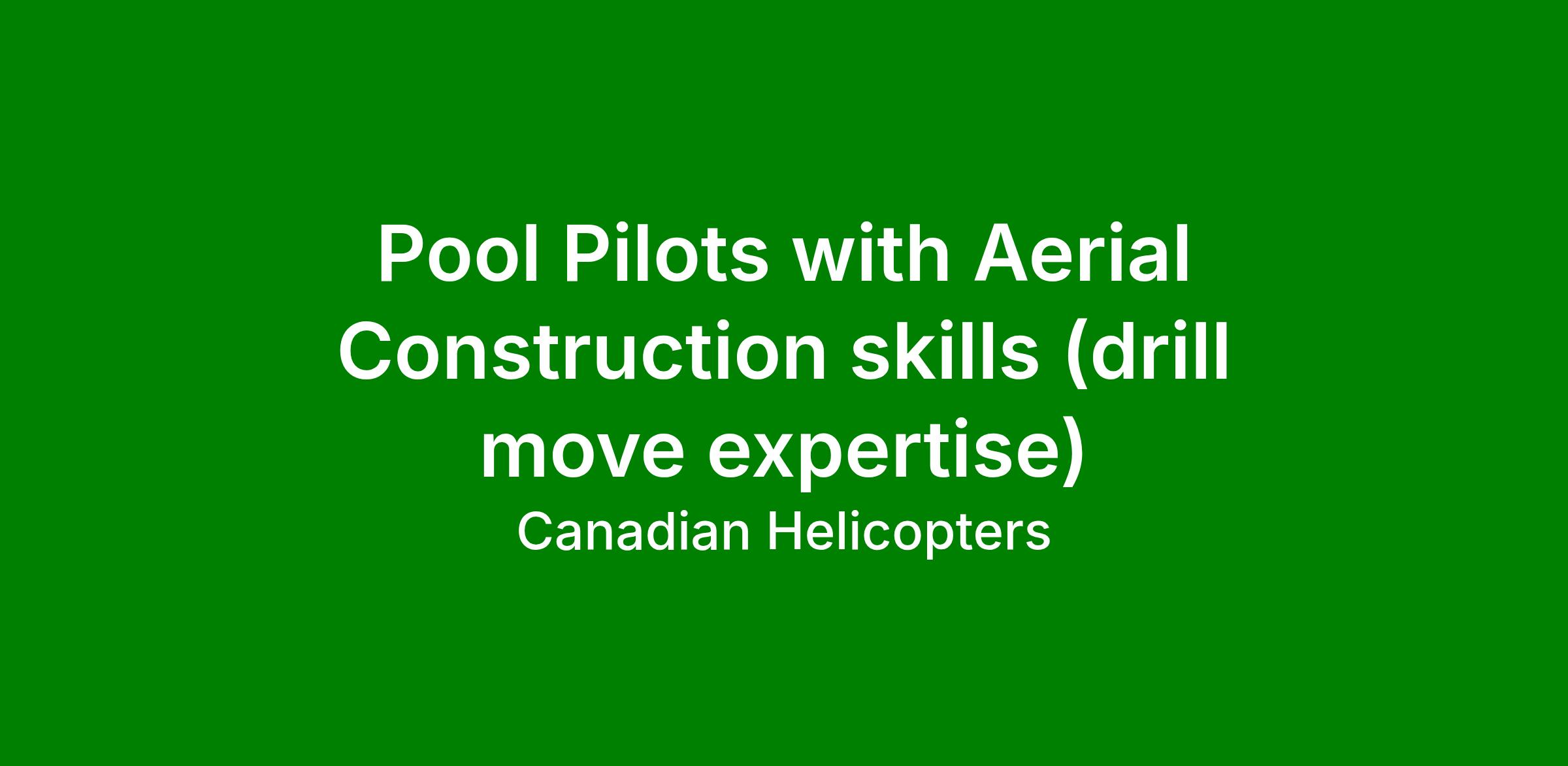 Pilots with drill move expertise are highly skilled pilots that have a confident, meticulous and positive attitude. The pilots will have to do areal construction into remote areas for exploration projects of all sorts.