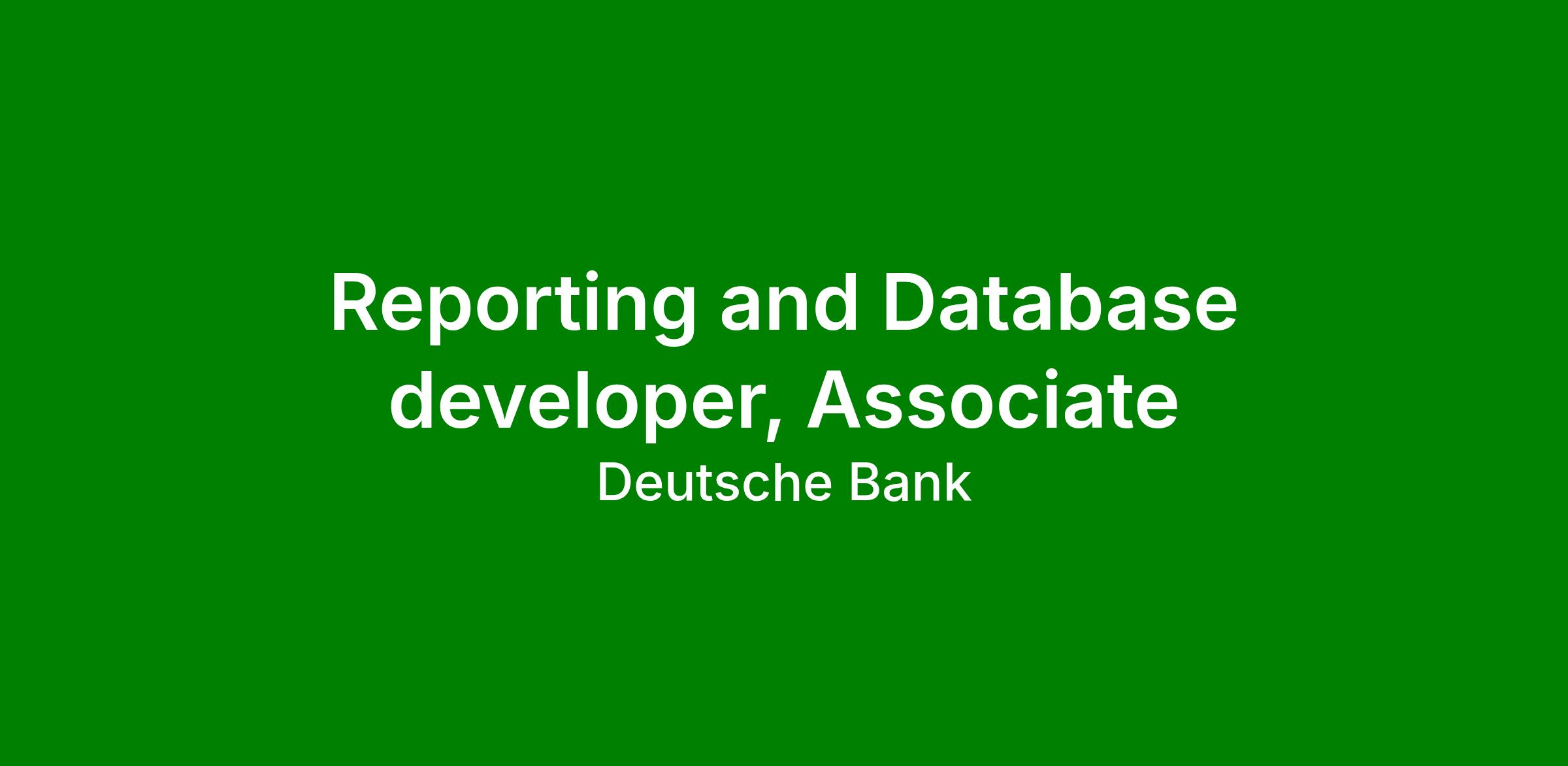 Job Title- Reporting and Database developer, Associate
