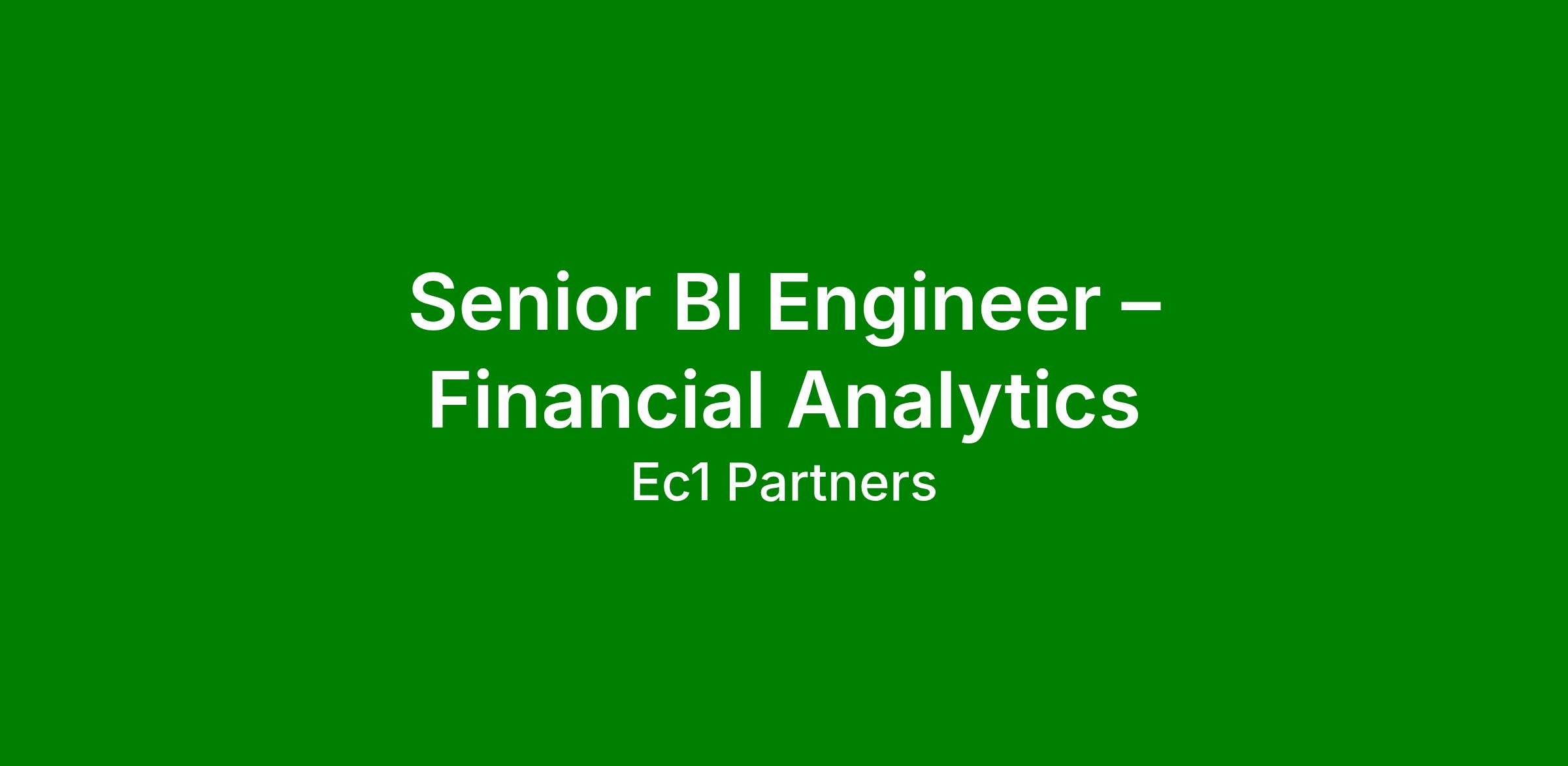 Strong BI or analytics engineering experience
