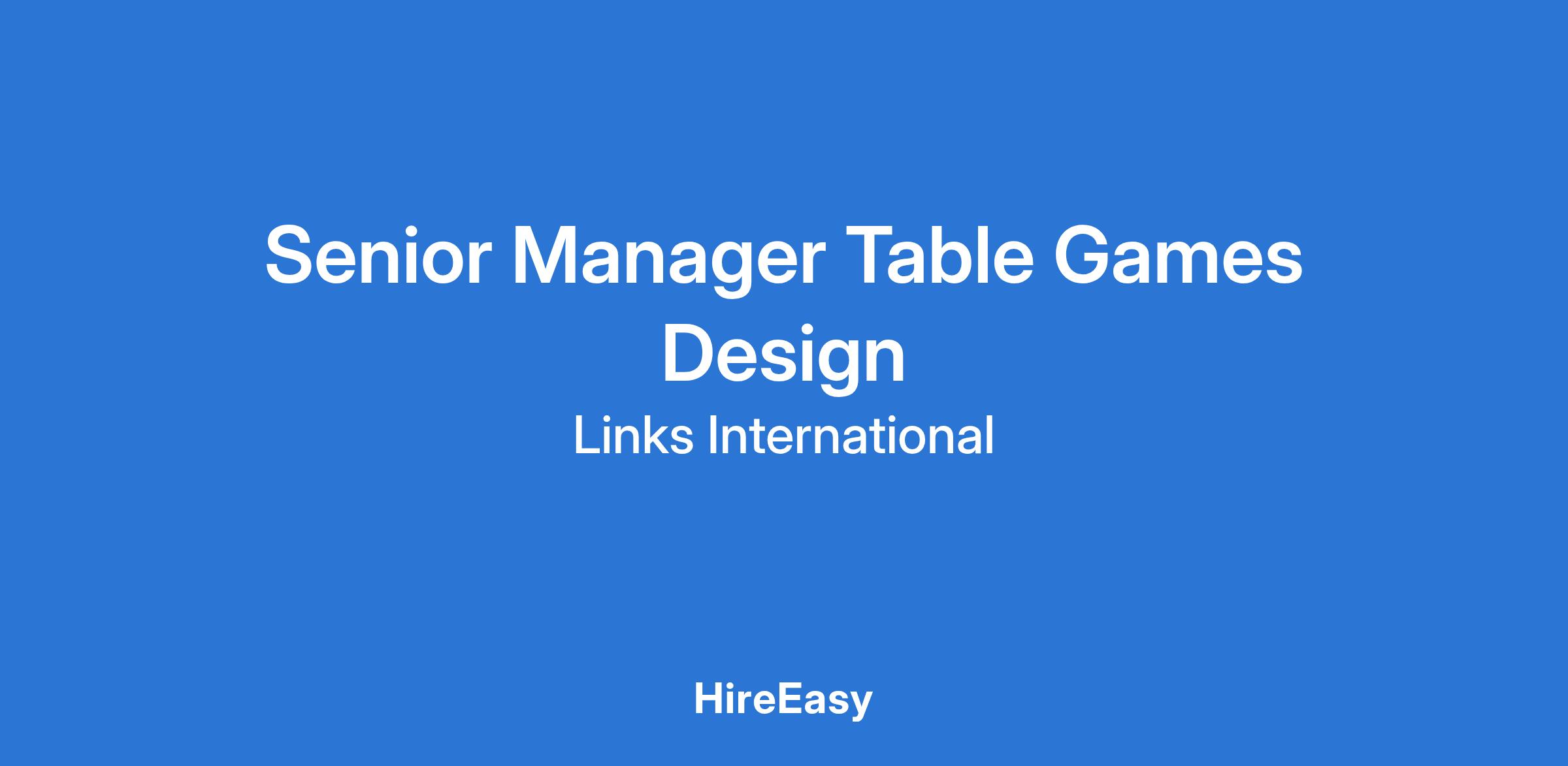Senior Manager Table Games Design
