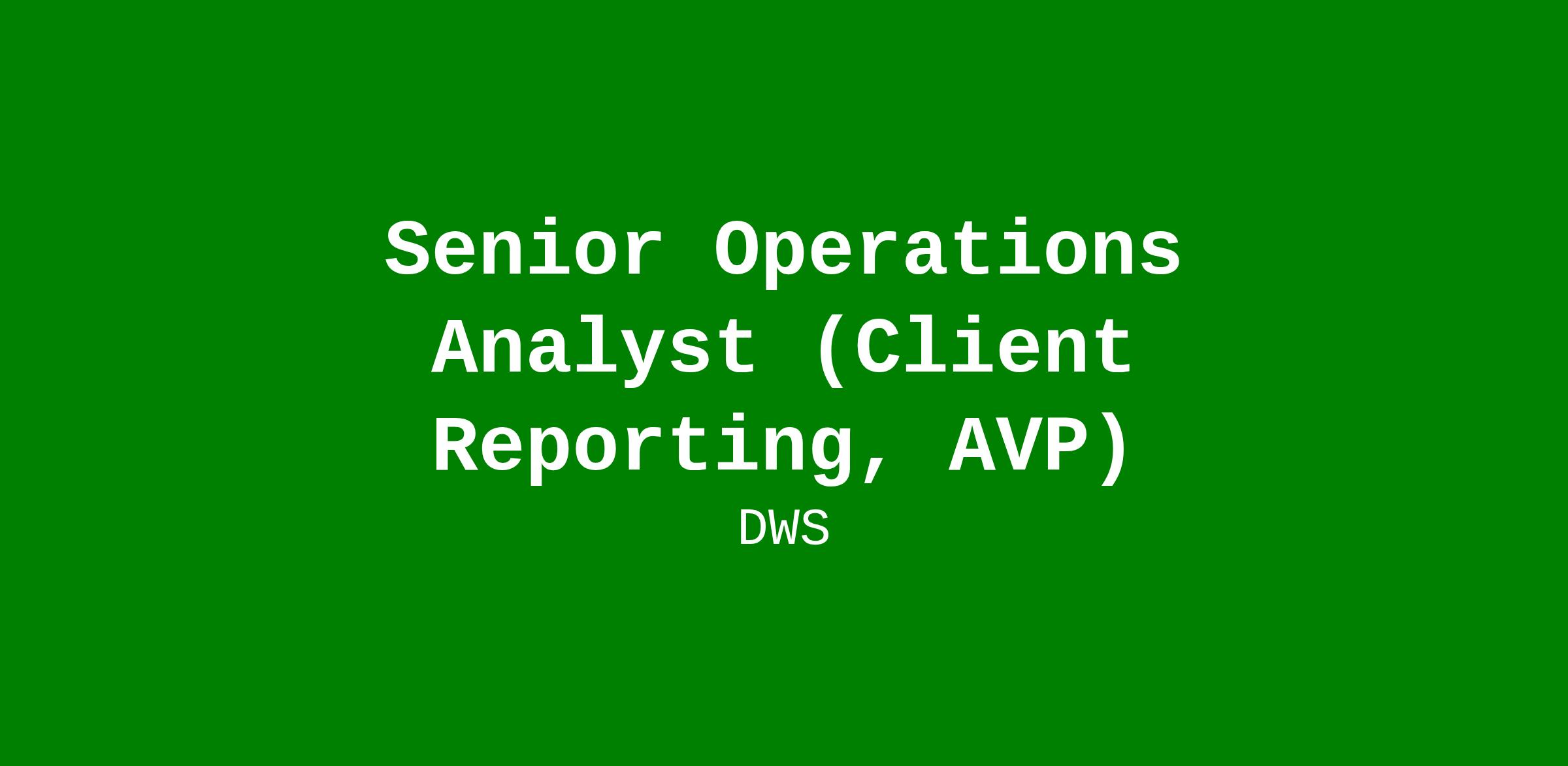 Job Title: Senior Operations Analyst (Client Reporting, AVP)