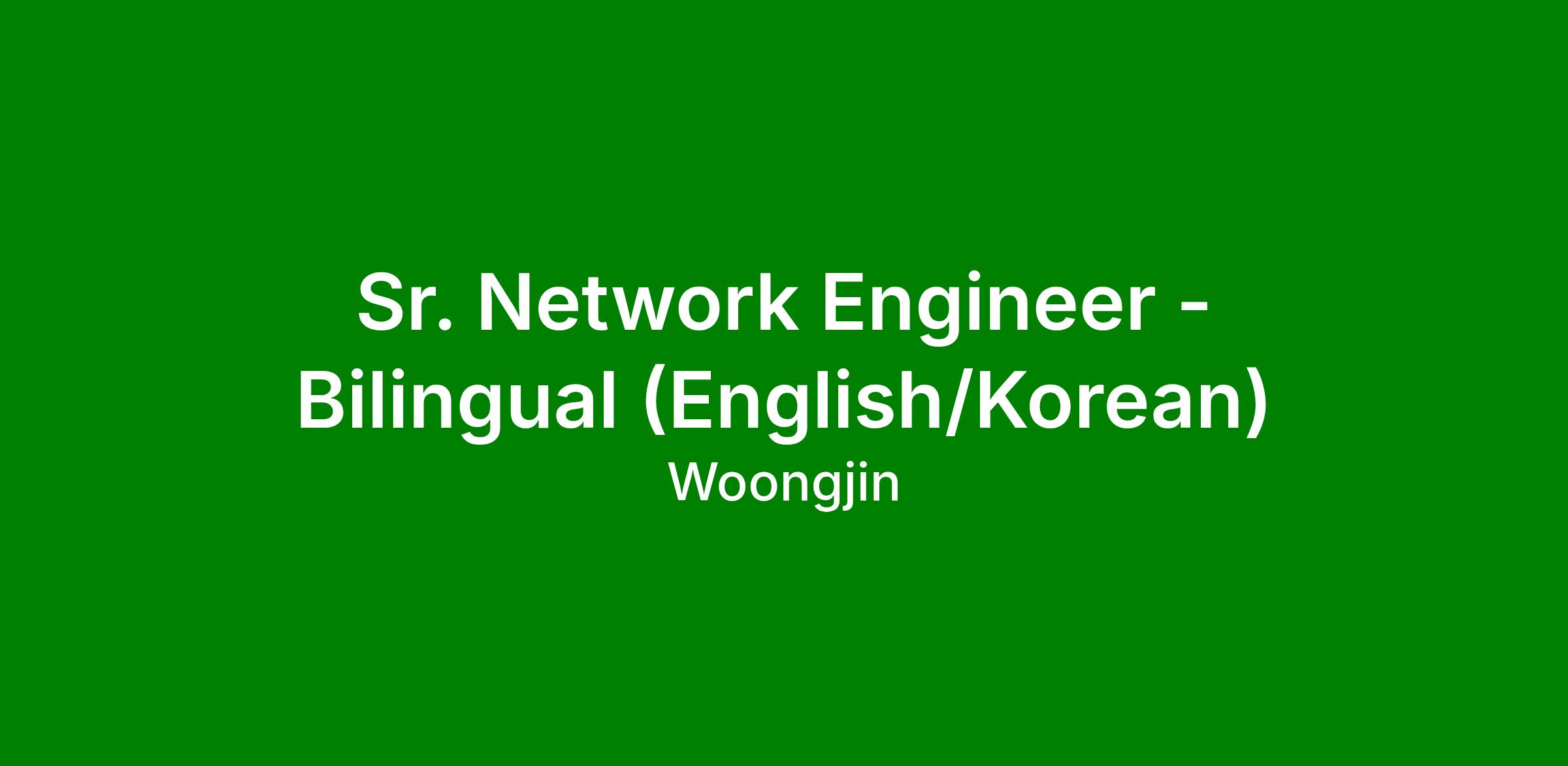Sr. Network Engineer - Bilingual (English/Korean)