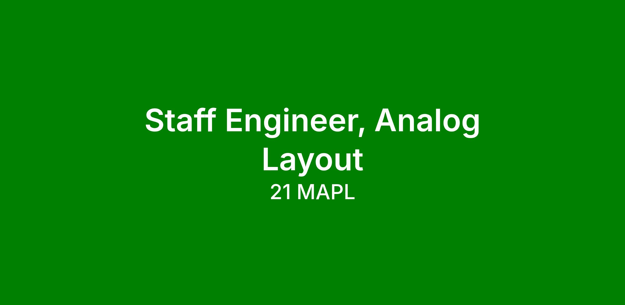 We are looking for a Staff Analog Layout Engineer to contribute to the development of High-Speed Connectivity, Broadband Analog and Computing/Storage-Memory Data-Transport products (including functional blocks such as high-speed digital, multi-GHz ADC/DAC, PLL/DLL serial and parallel I/O, and clock generation/distribution for custom ICs). The candidate must have a proven record of laying out high-performance analog circuits in state-of-the-art CMOS process technologies, successfully performed top-level integrations, and placed products into volume production multiple times.What You Can Expect