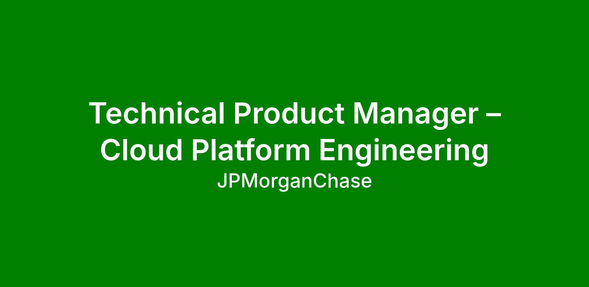 DescriptionPlatform Product Manager – Cloud Platform Engineering