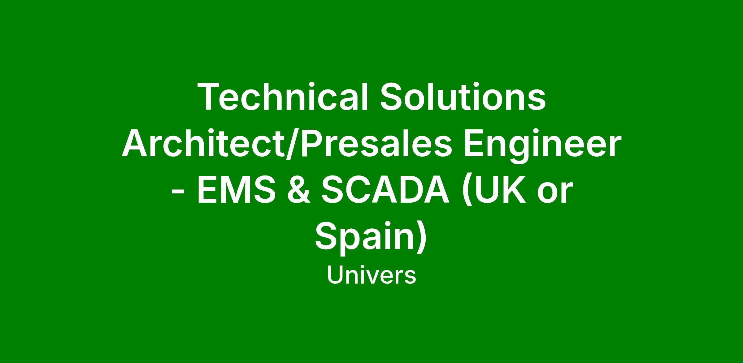 Job Title: Technical Solutions Architect / Presales Engineer – Energy Management Systems (EMS & SCADA)